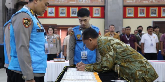 Media Patrolibali, Denpasar – Untuk mewujudkan transformasi di dalam organisasi Polri yang Presisi (Prediktif, Responsibilitias, Transparansi Berkeadilan) dan menjadikan SDM yang unggul, Polda Bali menggelar kegiatan pembacaan, pengambilan sumpah dan penandatanganan pakta integritas bagi panitia, peserta dan orang tua/wali penerimaan terpadu calon anggota Polri TA 2025 di Gedung Presisi Polda Bali, Jumat (7/3). Kegiatan ini juga dihadiri oleh pengawas internal dan eksternal.