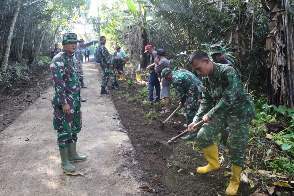 Dansatgas Letkol Riza Taufiq Hasan, S.I.P., yang meninjau langsung progres pekerjaan berbagai sasaran TMMD menyempatkan diri berbincang dengan anggota Satgas serta masyarakat yang ikut bergotong royong. Dalam kesempatan tersebut, ia mengingatkan pentingnya menjaga semangat dan kesehatan agar berbagai sasaran fisik dalam program TMMD ini dapat diselesaiakan tepat waktu. Ucapnya