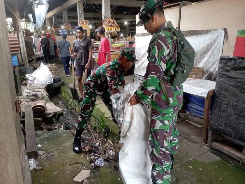 Media Patrolibali, Tabanan – Satuan Tugas (Satgas) TNI Manunggal Membangun Desa (TMMD) ke-123 Kodim 1619/Tabanan melaksanakan kegiatan pembersihan pasar sebagai bagian dari sasaran tambahan program TMMD. Kegiatan ini bertujuan untuk menciptakan lingkungan pasar yang lebih bersih, sehat, dan nyaman bagi masyarakat yang beraktivitas di sekitaran pasar Desa Bajera, Kec. Selemadeg, Kab. Tabanan, Selasa (11/3/2025)