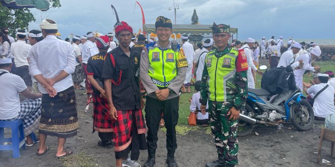 Media Patrolibali, Polres Tabanan- Polsek Pupuan Sabtu, 22 Maret 2025 mulai pukul 08.30 s/d 15.30 Wita , Bhabinkamtibmas Desa Jelijih Punggang Brigpol I Wayan Ardana, S.H. bersama Babinsa Desa Jelijih Punggang Sertu I Made Arya Subagia melaksanakan Pengamanan dan Pengawalan Kegiatan Melasti Desa Adat Punggang menuju Pantai Soka dalam rangkaian Perayaan Hari Raya Nyepi Tahun Baru Saka 1947.