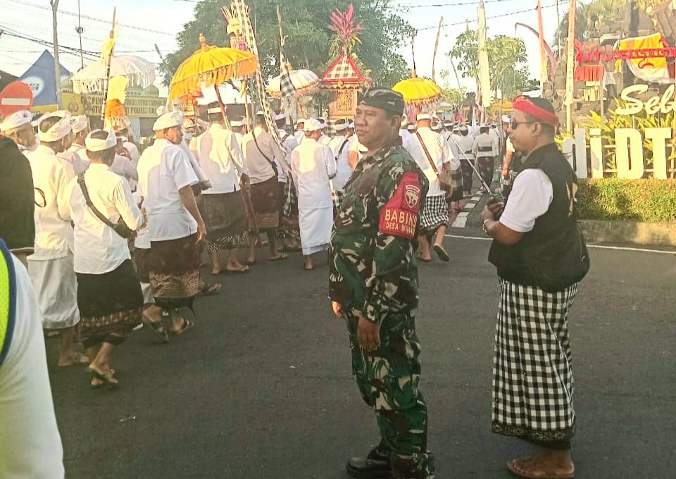 Babinsa Serda I Nengah Susapa bersama Bhabinkamtibmas bersinergi mengatur lalu lintas, memastikan keamanan jalur yang dilalui peserta, serta menjaga ketertiban selama prosesi berlangsung. Mereka juga berkoordinasi dengan pecalang dan tokoh adat untuk menjaga kesakralan prosesi upacara.