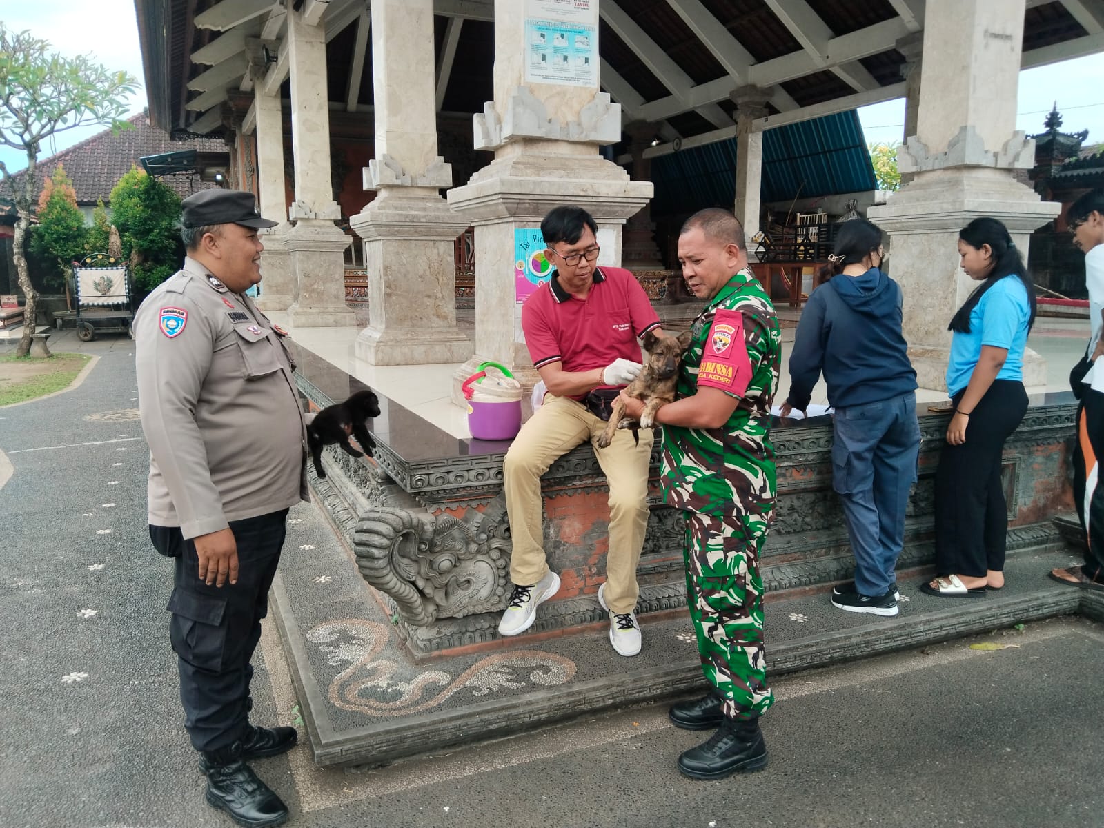 Media Patrolibali, Tabanan — Dalam upaya meningkatkan kesehatan hewan peliharaan dan mencegah penyebaran rabies, Babinsa Desa Kediri Koramil 1619-04/Kediri Kopka I Ketut Partana bersama Bhabinkamtibmas