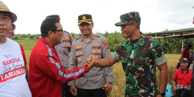 Media Patrolibali, Tabanan – Dalam upaya memperkuat ketahanan pangan dan menstabilkan harga gabah di tingkat petani, Pemerintah Kabupaten Tabanan bersama Kodim 1619/Tabanan melaksanakan panen raya padi di Subak Aseman IV, Desa Tangguntiti, Kecamatan Selemadeg Timur. Kegiatan ini juga menjadi bagian dari program Serap Gabah (SERGAB) yang bertujuan menyerap hasil panen petani.
