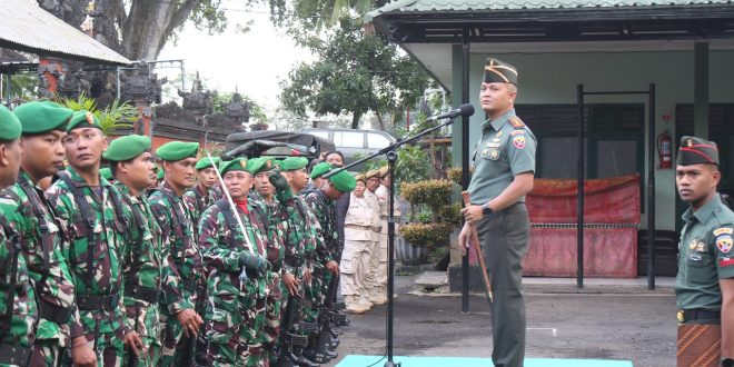 Media Patrolibali, Tabanan – Komando Distrik Militer (Kodim) 1619/Tabanan menggelar upacara bendera rutin tanggal 17 setiap bulan sebagai wujud penghormatan terhadap jasa para pahlawan dan pemantapan nilai-nilai nasionalisme yang dipimpin langsung oleh Dandim 1619/Tabanan, Letkol Inf Riza Taufiq Hasan, S.I.P., di halaman Makodim Tabanan, Senin (19/5/2025)