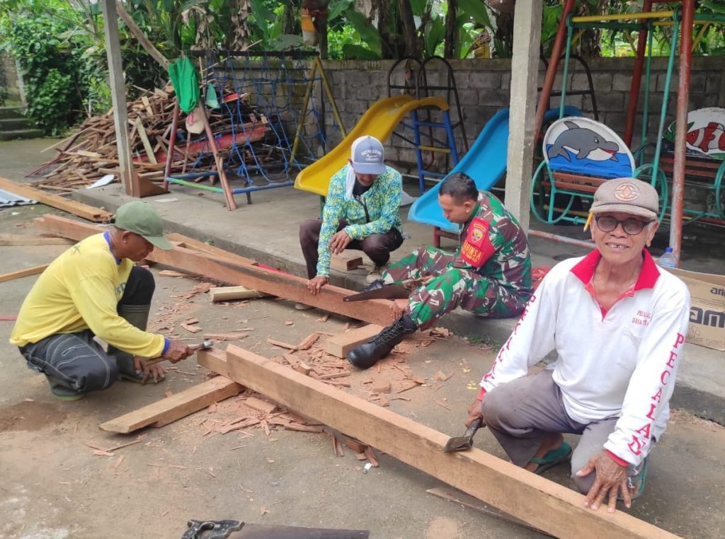 “Renovasi ini direncanakan selesai dalam waktu dua minggu ke depan, mencakup penggantian rangka dan genteng atap, serta perbaikan plafon yang rusak. Diharapkan dengan selesainya renovasi, TK Tunas Mekar akan menjadi tempat belajar yang lebih layak dan menyenangkan bagi anak-anak Desa Timpag”. Pungkas Babinsa