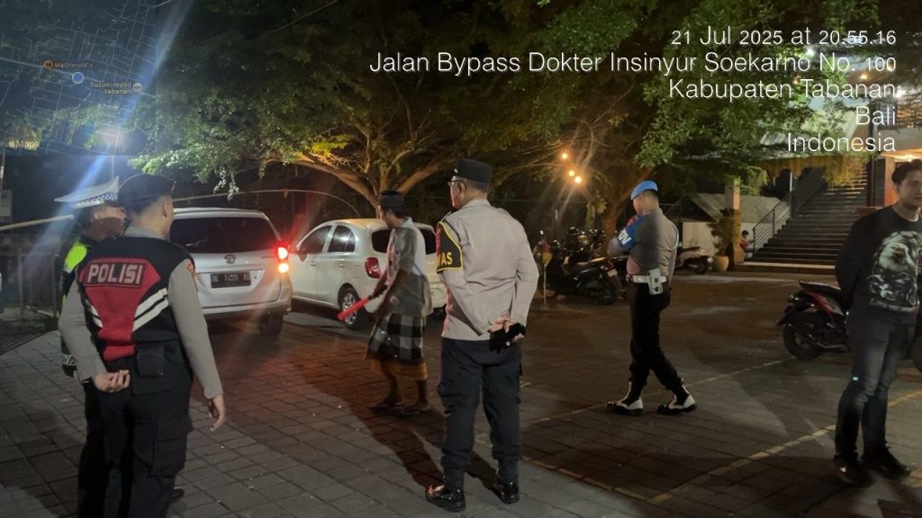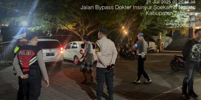 Media Patrolibali, Polda Bali – Polres Tabanan – Humas Tabanan. Polres Tabanan kembali menunjukkan keseriusannya dalam menjaga keamanan dan ketertiban masyarakat dengan melaksanakan Blue Light Patrol dan giat Yustisi pada Senin malam, 21 Juli 2025. Kegiatan yang berlangsung mulai pukul 20.30 hingga 22.00 Wita ini dipimpin oleh Pawas Ksb. Binkar AKP I Nyoman Sukana, S.H., dan melibatkan personel gabungan dari berbagai fungsi, yakni Lantas, Sabhara, Reskrim, dan Intelkam, dengan pengawasan dari personel Propos.