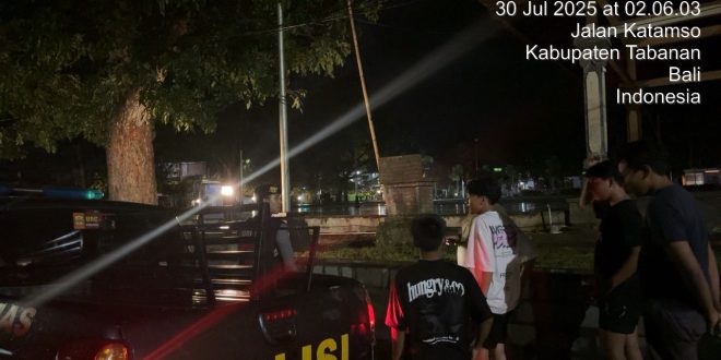 Media Patrolibali, Polda Bali – Polres Tabanan – Humas Tabanan. Dalam rangka menciptakan situasi aman dan kondusif pada jam-jam rawan, Sat Samapta Polres Tabanan melaksanakan Patroli Jalan Kaki Subuh Keliling Perintis Presisi pada Rabu dini hari, 30 Juli 2025. Kegiatan ini dimulai pukul 01.00 Wita hingga 02.30 Wita dengan menyasar sejumlah lokasi strategis yang dinilai rawan terjadinya gangguan kamtibmas.