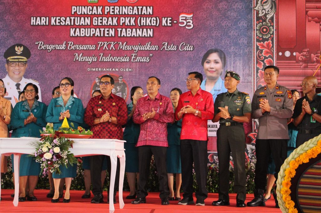 “Dengan semangat kebersamaan dan sinergi yang terbangun antara TP PKK, pemerintah daerah, dan TNI-Polri, diharapkan capaian-capaian pembangunan keluarga di Kabupaten Tabanan dapat terus meningkat. Peringatan HKG PKK ke-53 ini menjadi pengingat bahwa pembangunan bangsa dimulai dari keluarga, dan PKK adalah motor penggeraknya.” Pungkasnya