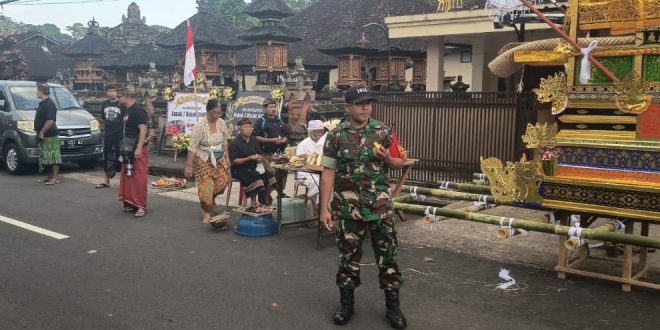 Media Patrolibali, Tabanan – Babinsa Desa Jegu, Koramil 1619-08/Penebel Serka I Made Duduk, turut serta melaksanakan pengamanan jalannya upacara ngaben salah satu warga Desa Jegu, Kecamatan Penebel, Sabtu (9/8/2025). Kegiatan ini bertujuan untuk memastikan prosesi adat berjalan dengan tertib, aman, dan lancar.
