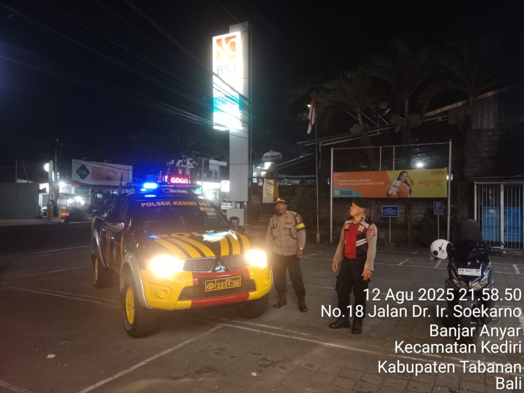 Media Patrolibali, Polsek Kediri Polres Tabanan melaksanakan ‘Patroli Barcode’ di seputaran wilayah Kediri, Rabu (13/8/2025 ) pukul 00.15 s/d 03.00 wita dalam rangka menciptakan situasi Kamtibmas yang aman dan kondusif.