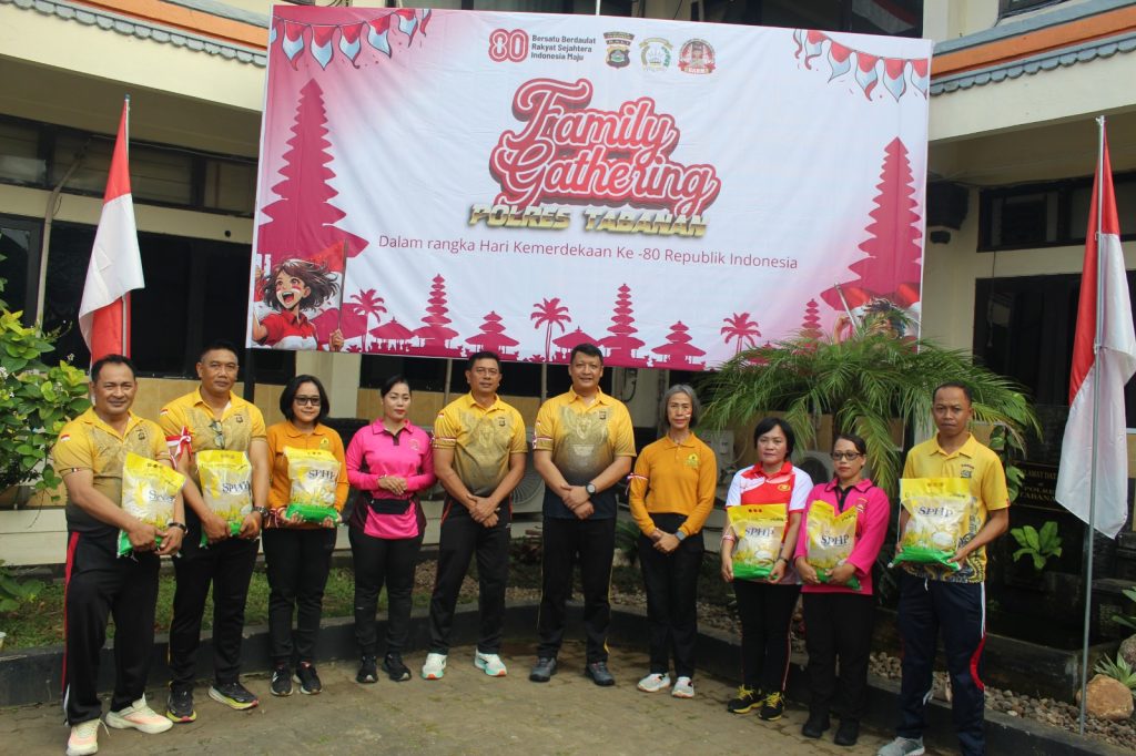 Kegiatan Family Gathering ini diakhiri dengan pembagian beras SPHP kepada seluruh peserta sebagai bentuk perhatian Polres Tabanan terhadap kesejahteraan keluarga besar anggotanya. Hingga berakhir pada pukul 10.30 Wita, seluruh rangkaian acara berlangsung dengan lancar, aman, dan penuh kebersamaan, mencerminkan semangat persatuan menyongsong HUT ke-80 Republik Indonesia.