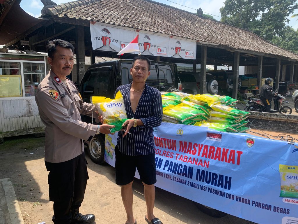 “Seijin Kapolres Tabanan AKBP I Putu Bayu Pati,S.I.K.,M.H. Kapolsek Marga AKP I Ketut Suandi,S.H. dari tempat terpisah “menyampaikan bahwa kegiatan ini bertujuan untuk membantu warga masyarakat mendapatkan beras dengan harga terjangkau dan stabil.