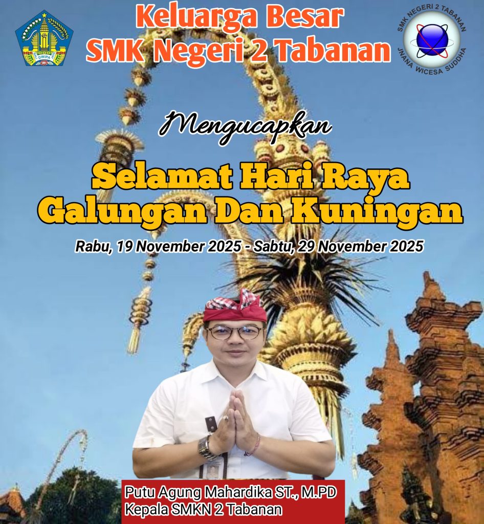 Selamat Hari Raya Galungan Dan Kuningan, 19 – 29 November 2025 Rudi 37 detik ago BERITA, PENDIDIKAN Leave a comment 1 Views Related Articles Sambut HUT Kota Singasana ke-532, Koramil Kerambitan Turun Tangan dalam Aksi Gerebek Sampah 5 hari ago Polda Bali Gencar Awasi Harga Beras, 2 Toko di Denpasar Terjaring Razia 2 minggu ago Polda Bali Pastikan Kinerja Polisi yang Humanis dan Profesional 3 minggu ago Share Facebook Twitter Stumbleupon LinkedIn Pinterest