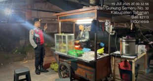 Media Patrolibali, Polres Tabanan-Polsek Kerambitan, Jumat 18 Juli 2025; Bhabinkamtibmas Desa Tista I Made Rustika Arya, S.H., melaksanakan pengamanan kegiatan pengecoran jalan jebol di Desa Tista. Kegiatan dilaksanakan pukul 08.00 Wita sampai dengan selesai. Kegiatan pengamanan meliputi pengalihan arus lalu lintas dan pengamanan lokasi pengecoran dari lalu lalang orang yang …