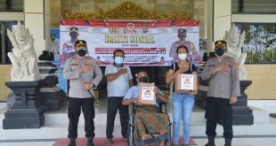 Patrolibali.com (Tabanan) Dalam rangka memperingati Hari Bhayangkara ke – 75 tanggal 1 Juli 2021, Polres Tabanan melakukan berbagai kegiatan sosial, seperti pada hari Kamis tanggal 24 Juni 2021 bertempat di depan Lobby Polres Tabanan Kapolres Tabanan menyerahkan bantuan sebuah Kursi Roda dan Sembako kepada I Gede Sutama seorang warga yang …