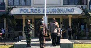 Patroli Bali.com (Klungkung) Polres Klungkung tidak ingin ketinggalan dalam memperingati Hari Ulang Tahun (HUT) TNI ke 75.Senin pagi, Kapolres Klungkung, AKBP Bima Aria Viyasa, S.I.K., M.H. bersama waka Polres Klungkung dan Para Pejabat utama Polres klungkung mendatangi Markas Komando Distrik Militer (Kodim) 1610 Klungkung dengan membawa Kue ulang Tahun.senin,5/10/2020. Kado …