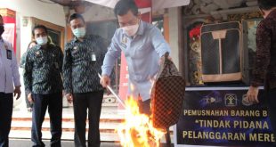 Patrolibali.com (DENPASAR ) bertempat di halaman Kantor Wilayah Kementerian Hukum dan HAM Bali dilaksanakan Acara Pemusnahan Barang Bukti Tindak Pidana di Bidang Merek. Kegiatan ini merupakan kali pertama diadakan pemusnahan barang bukti hasil tindak pidana di bidang merek oleh Penyidik Pegawai Negeri Sipil (PPNS) Kekayaan Intelektual.Selasa, 18 Januari 2022. “Seperti …