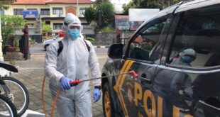 Patrolibali.com (Bangli) Satuan Sabhara Polres Bangli melakukan penyemprotan cairan disinfektan pada kendaraan dinas dan seluruh ruangan kerja di Mapolres Bangli, Sabtu (21/11). Hal tersebut dilakukan untuk mencegah mewabahnya virus Covid-19 lingkungan Polres Bangli. Kapolres Bangli AKBP I Gusti Agung Dhana Aryawan menegaskan, sterilisasi setiap hari dilakukan dalam rangka memutus mata …
