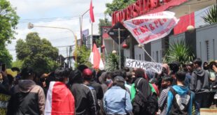 Patrolibali.com (Banyuwangi)Ribuan massa menggelar aksi tolak undang-undang cipta kerja didepan gedung DPRD kabupaten Banyuwangi pada hari Senin (12/10/2020). Sepanduk berutilis tolak tambang emas PT.BSI dan DSI tampak berkibar ditengah gelombang aksi unjuk rasa ini yang di ikuti berbagai elemen masyarakat mulai organisasi mahasiswa ekstra kampus dari berbagai perguruan tinggi di …