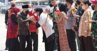 Denpasar, Patrolibali.com – Kapolda Irjen Pol Putu Jayan Danu Putra S.H., M.Si., beserta ibu, bersama Gubernur Bali Dr. Ir. Wayan Koster M.M., beserta ibu dan Pangdam/IX Udayana Mayjen TNI Sonny Aprianto beserta ibu, sambut kedatangan Wakil Presiden Republik indonesia Prof. Dr. K. H. Ma’ruf Amin beserta ibu, di Baseops Lanud …
