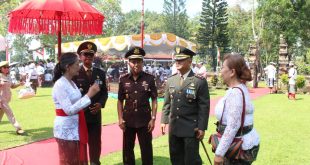 Media Patrolibali, Tabanan – Komandan Kodim 1619/Tabanan Letkol Inf Riza Taufiq Hasan, S.I.P., Dampingi Pangdam IX/Udayana yang diwakili oleh Pamen Ahli Bidang Jemen Hanneg Kodam IX/Udy Kolonel Inf Teguh Wiyono dan Komandan Korem 163/ Wsa yang diwakili Kasrem 163/Wsa Kolonel Inf Leo Agung Priyo Soembodo pada upacara peringatan HUT Puputan …