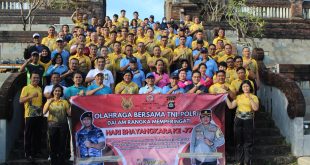 Polres Bandara, Patrolibali _ Menyemarakkan Hari Bhayangkara ke-77 tahun 2023, Polres Kawasan Bandara I Gusti Ngurah Rai menyelenggarakan kegiatan olah raga bersama dengan instansi terkait atau stakeholder berupa senam aerobic di depan Candi Bentar Stage PT Angkasa Pura I Bandara I Gusti Ngurah Rai, jumat (26/5/2023). Kegiatan olah raga bersama …